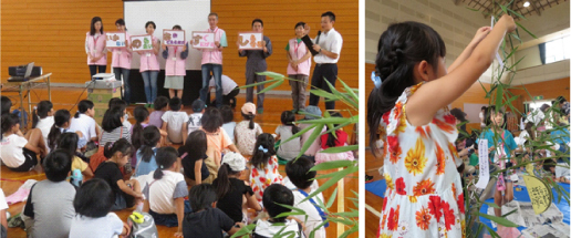 両城小学校体育館で、七夕まつりが開催され、子どもたち約70人が参加しました。