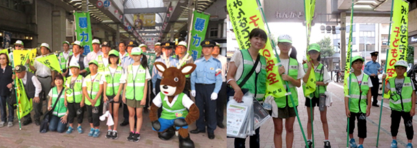 呉市暴力監視連合会主催、地域安全協力会と呉警察署の共催で実施。望地町子ども防犯パトロール隊も参加し、
