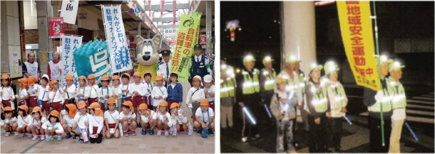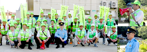 防犯組織を維持発展させよう、「地域の安全は地域住民の手で」という思いから、 呉市自治会連合会において「自主防犯パトロールの実施」を決議し、その後パトロール隊の 結成が各地区で行われ、現在では、地域ぐるみで児童登下校時の見守り活動や夜間パトロールなど、 犯罪の起こりにくいまちづくりに取り組んでいます。