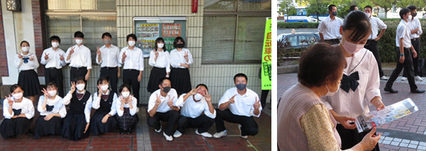 呉警察署管内の高校5校(呉三津田・呉宮原・音戸・清水ヶ丘・呉青山)の生徒15名と呉市職員、警察署員が、全国地域安全運動の一環として、特殊詐欺及び自転車盗の被害防止を呉駅前で呼びかけた。